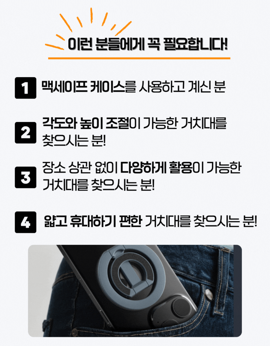 어느 각도든 자유롭게 거칠할 수 있는 양면 자석 거치대