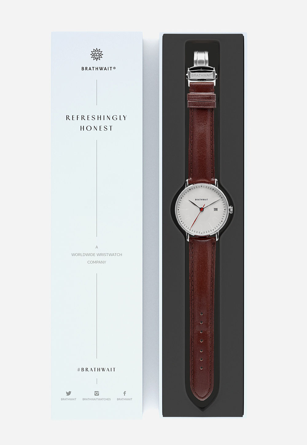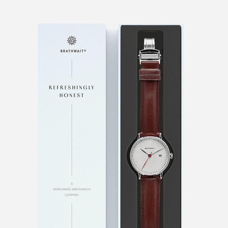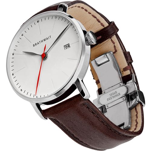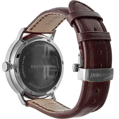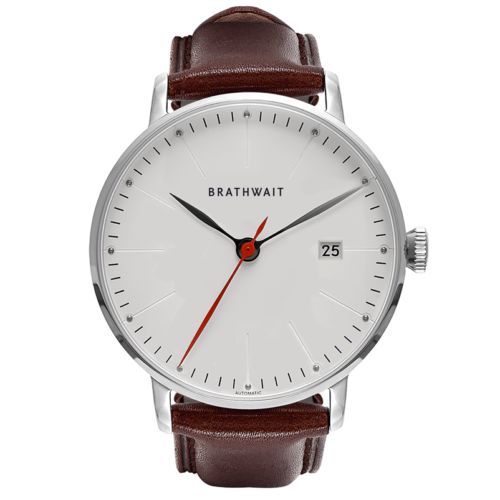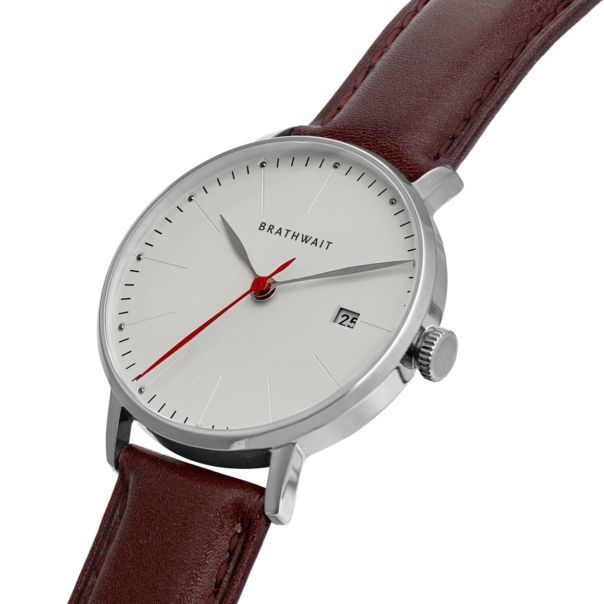 BRATHWAIT THE AUTOMATIC MINIMALIST WRIST WATCH Silver - Burgundy top grain Italian leather strap