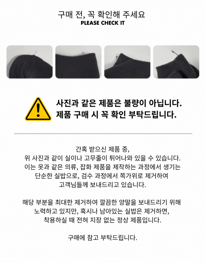 2. 상품 하자의 경우 상품 수령 후 7일 이내. 일자 경과 시 반품 / 교환 불가 (판매자 반품 배송비 부담)