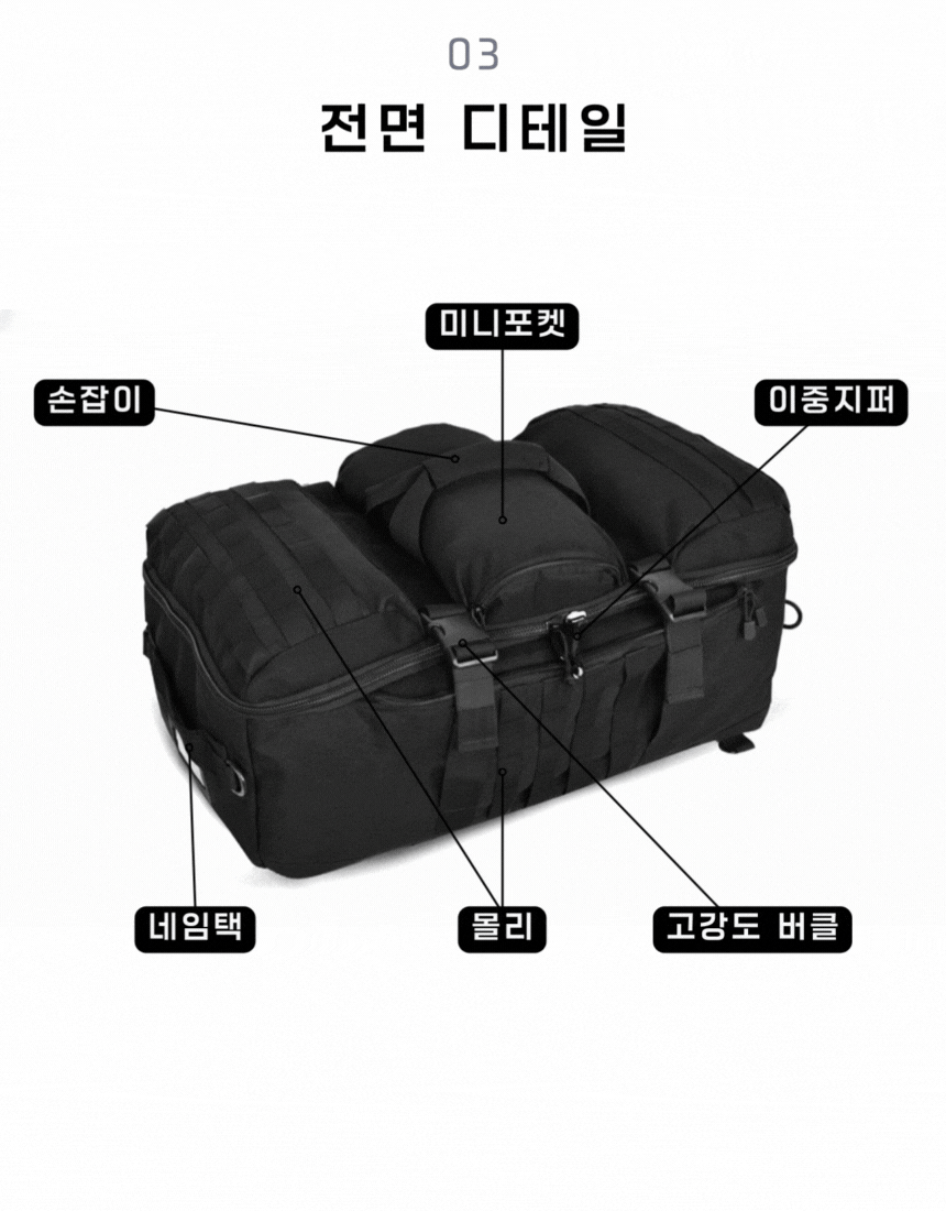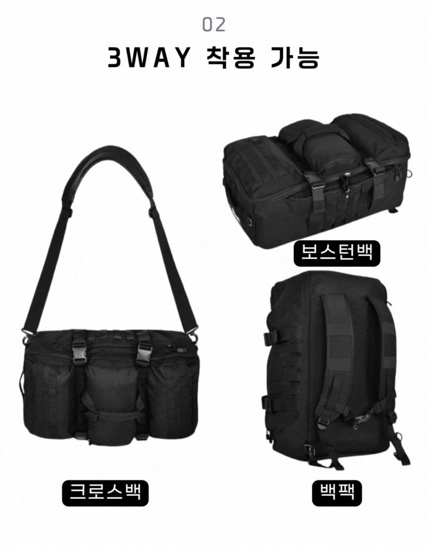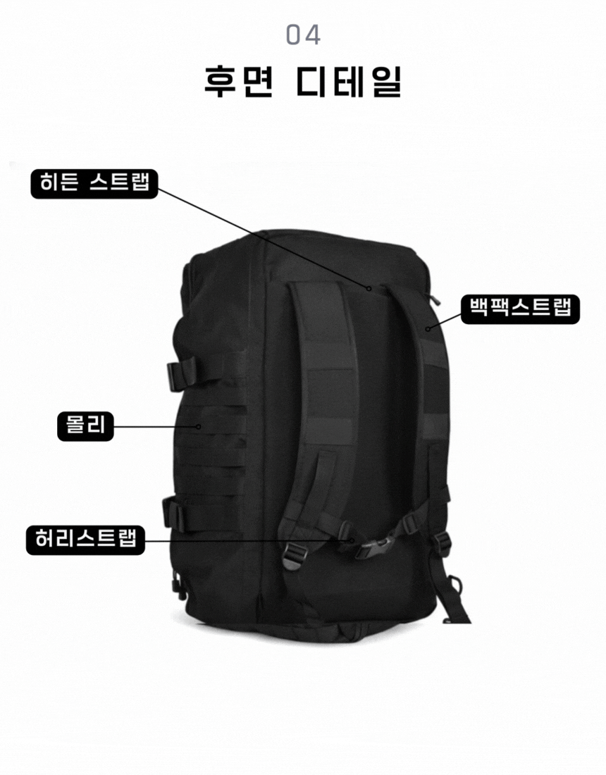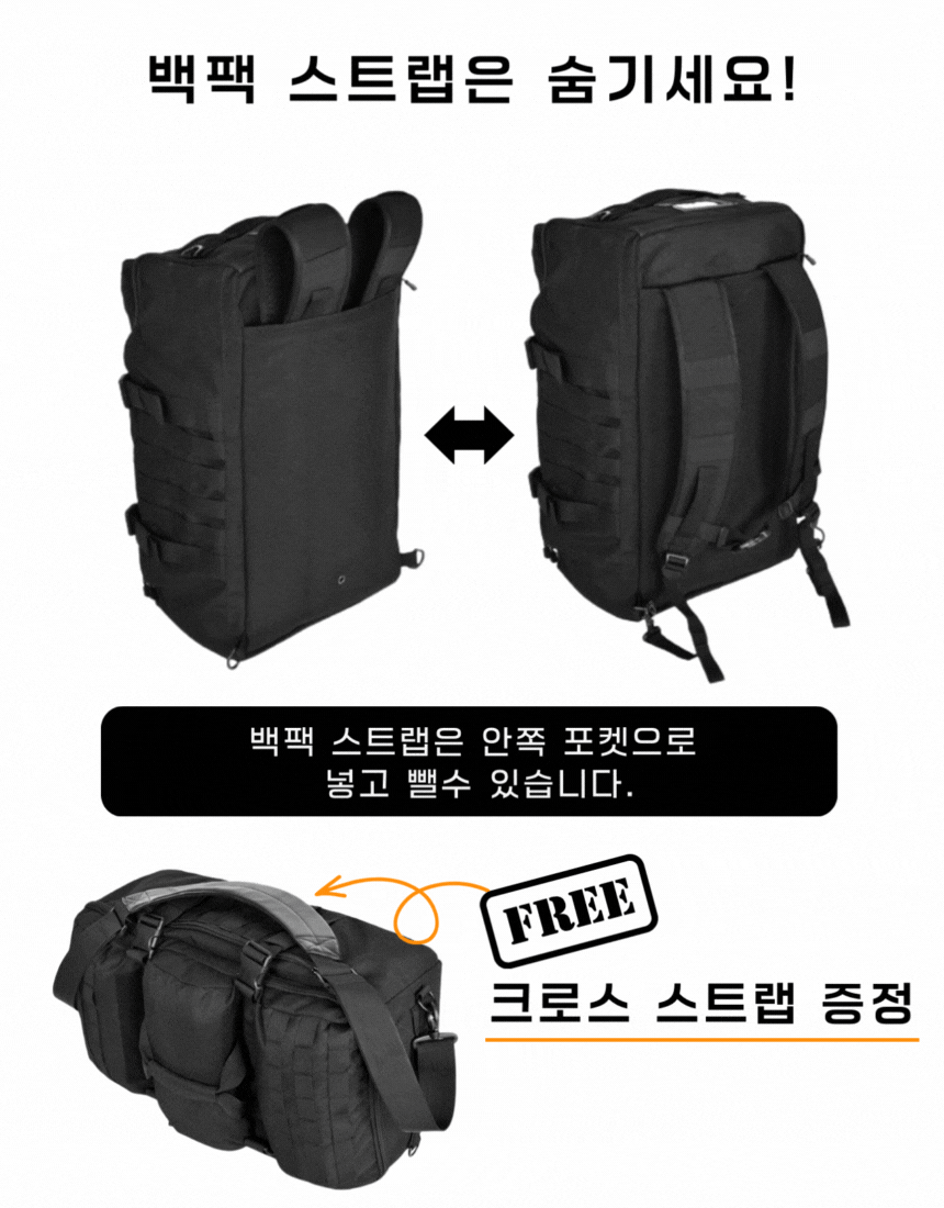 - 결합 가능한 백팩 & 더플백 손잡이로 편리한 휴대